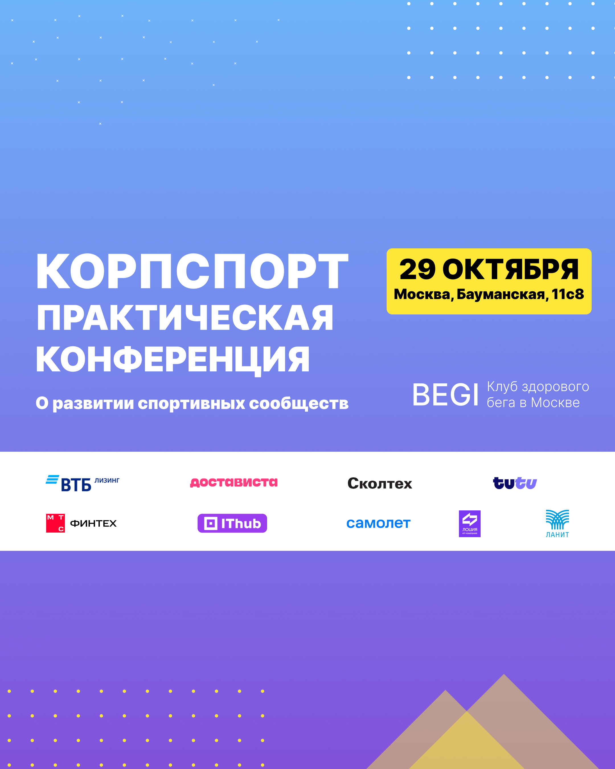 Будет много живых кейсов, интересных историй и реального опыта от тех, кто уже сделал спорт частью своей корпоративной культуры.
